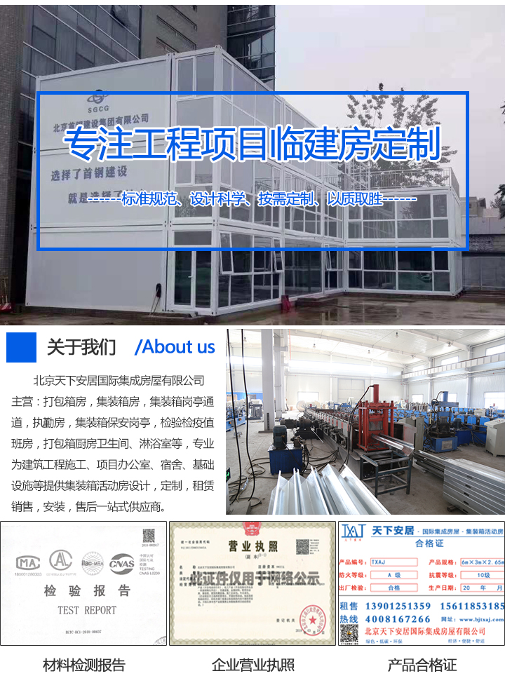 打包箱房定制鋼結(jié)構(gòu)框架,打包箱房整體重量輕、強(qiáng)度高、整體剛性好、抗變形能力強(qiáng)、建筑物自重僅是磚混結(jié)構(gòu)的五分之一,可抵抗10級(jí)颶風(fēng),所以抗震性和抗風(fēng)性都比較好。